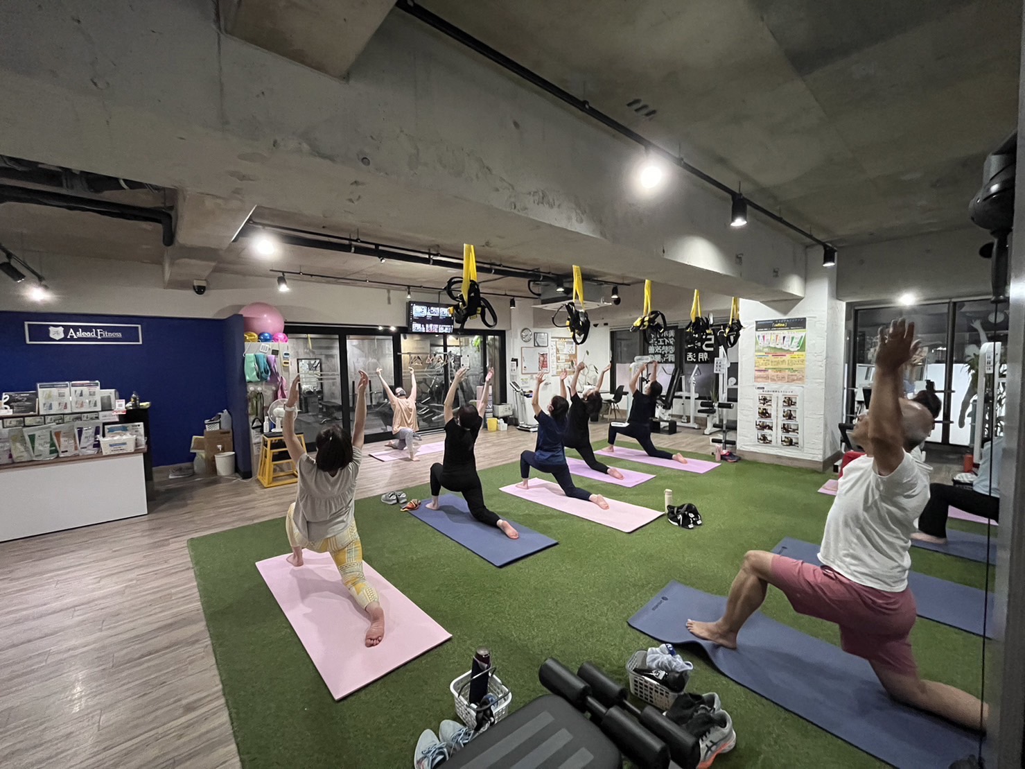 ヨガ、ストレッチ、ステップ、体幹andヒップ