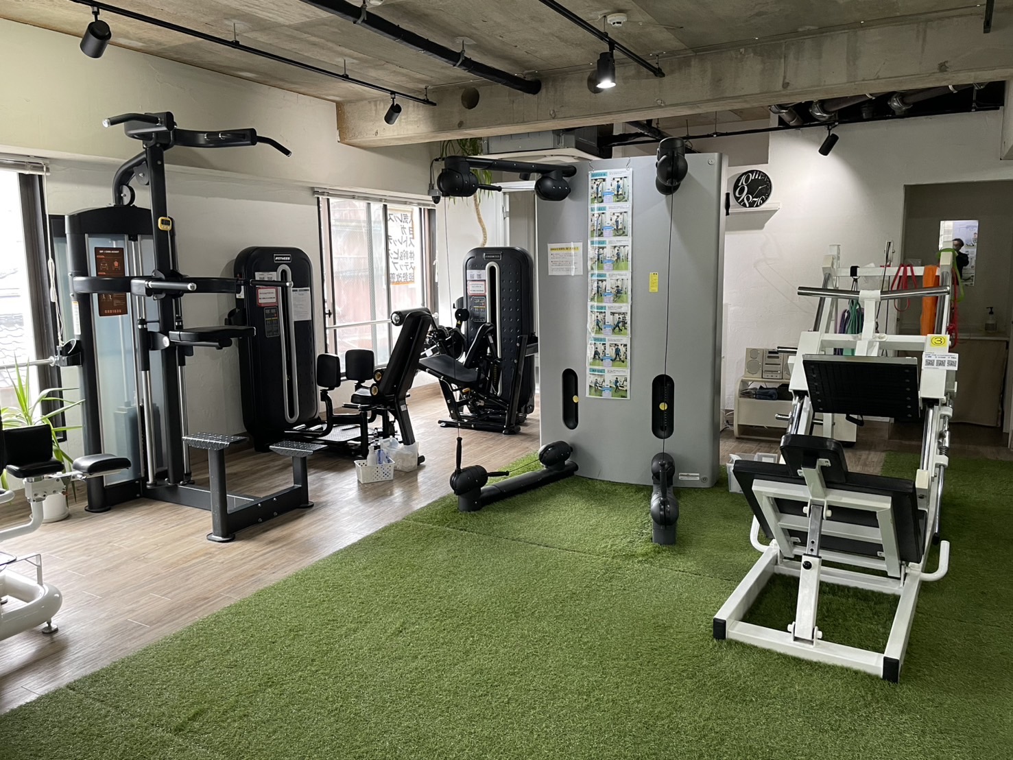 パワーラック2台、スミスマシン、可変式ダンベル2台、アシストチンニング、インナーサイ・アウターサイ、キネシス、レッグプレスandエクステンション、ケトルベル他